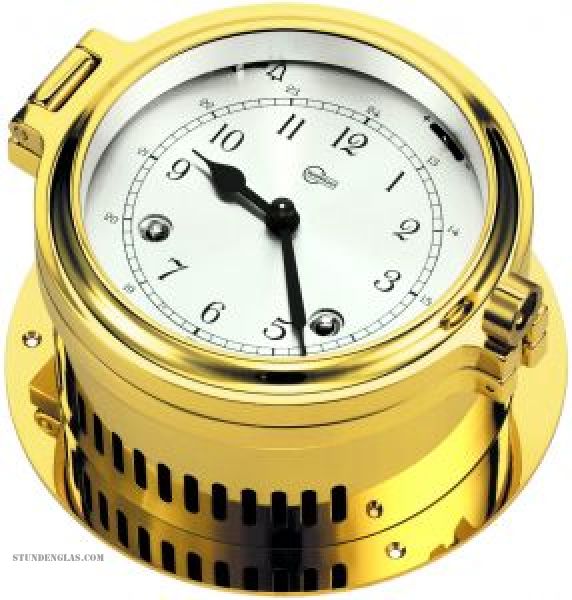 Die Glasenuhr verfügt über ein 8-Tage-Werk und das Gehäuse hat eine besonders massive Ausführung. Die Skala ist silbernfarben und die Zeiger in der Farbe Schwarz gehalten. Die Größe des Gehäuses der Glasen-Uhr beläuft sich auf 140*80 mm. Die Skala hat einen Durchmesser von 100 mm. Das maritime Design wirkt edel und ist ein Blickfang auf jedem Schiff.